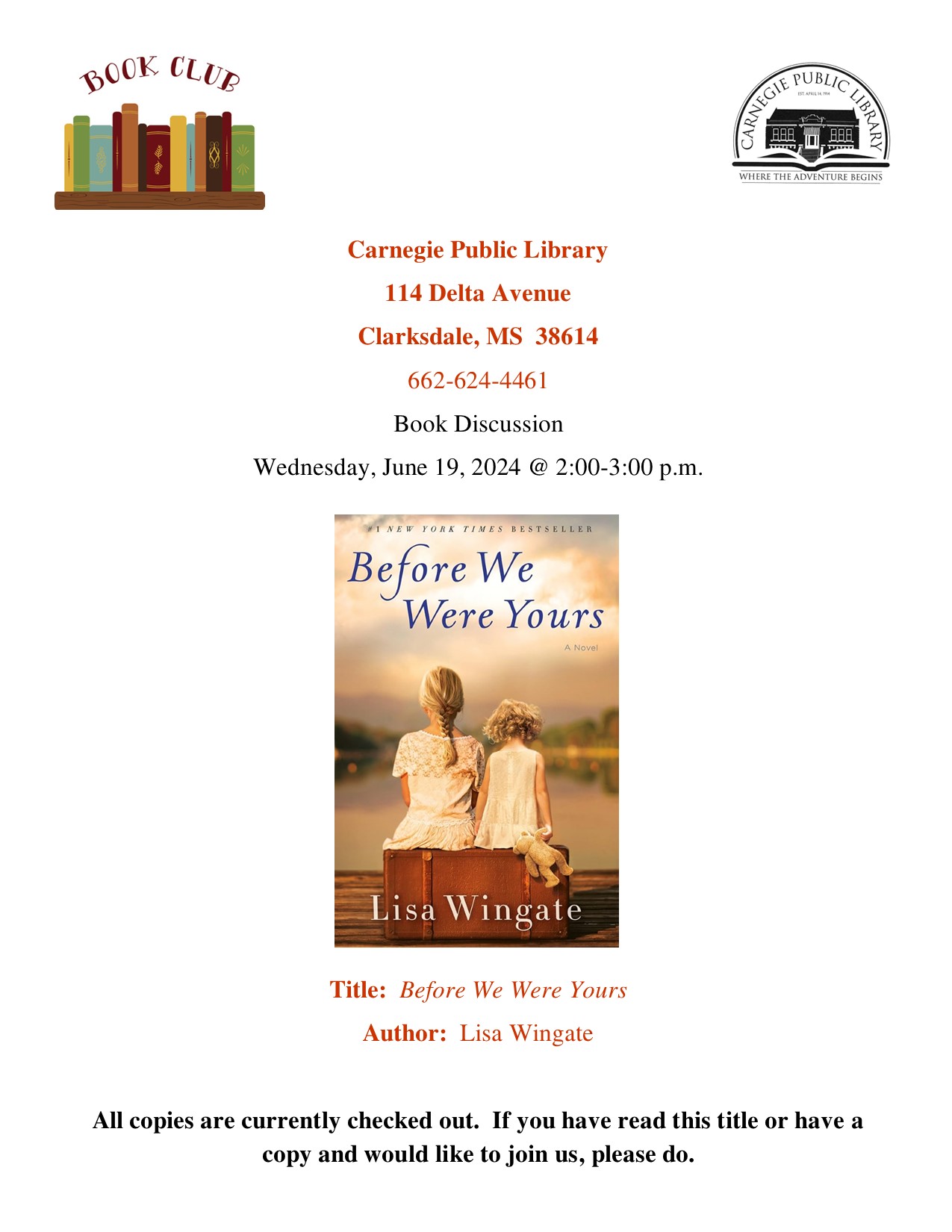 Summer Reading Calendar of Events -July